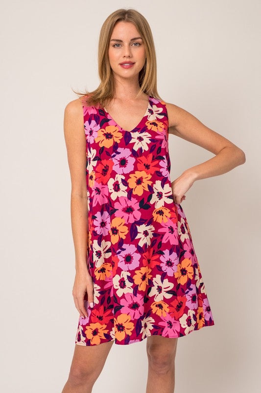 Shay Sleeveless V-neck Dress in Magenta Floral