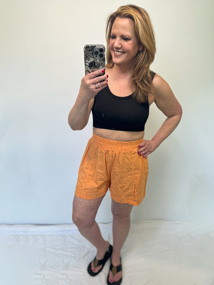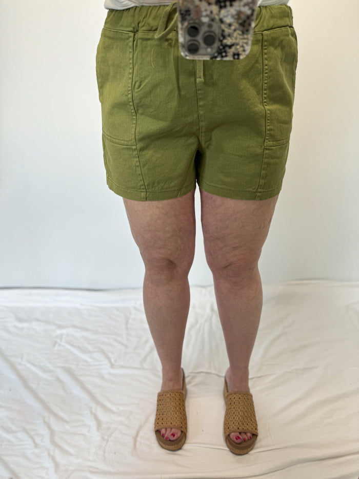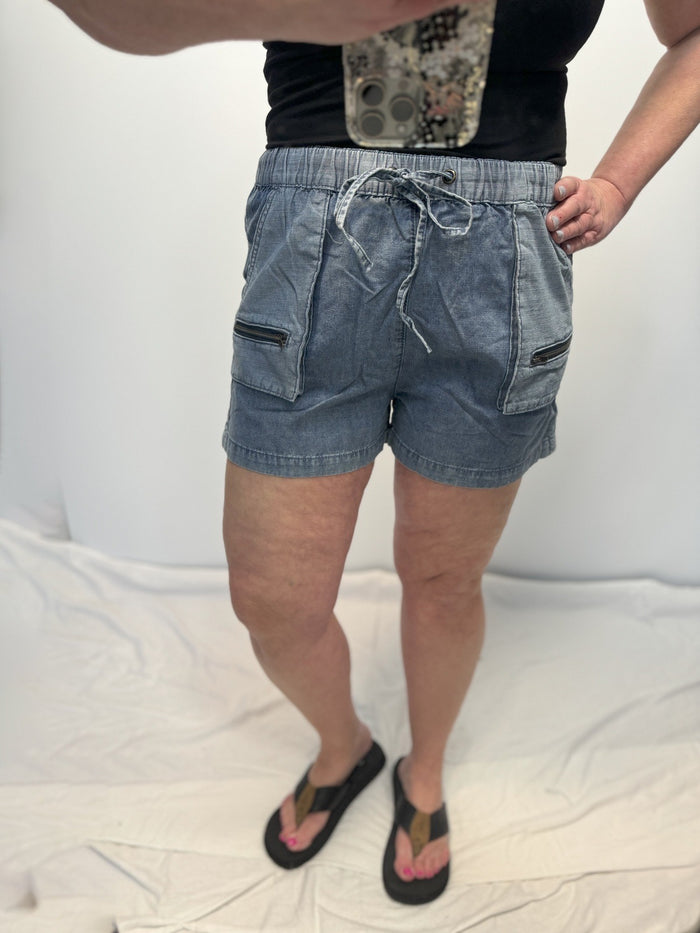Paulette Two Tone Elastic Waist Shorts in Blue Denim