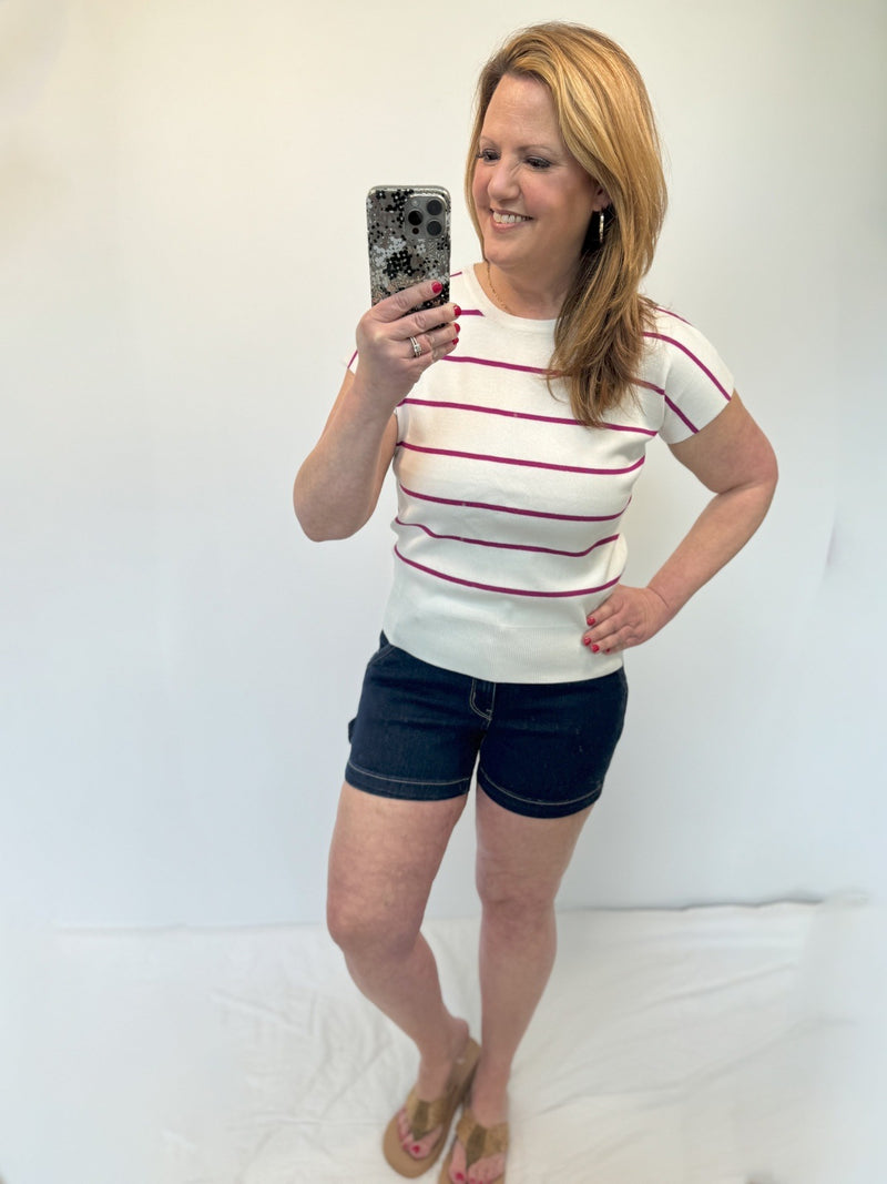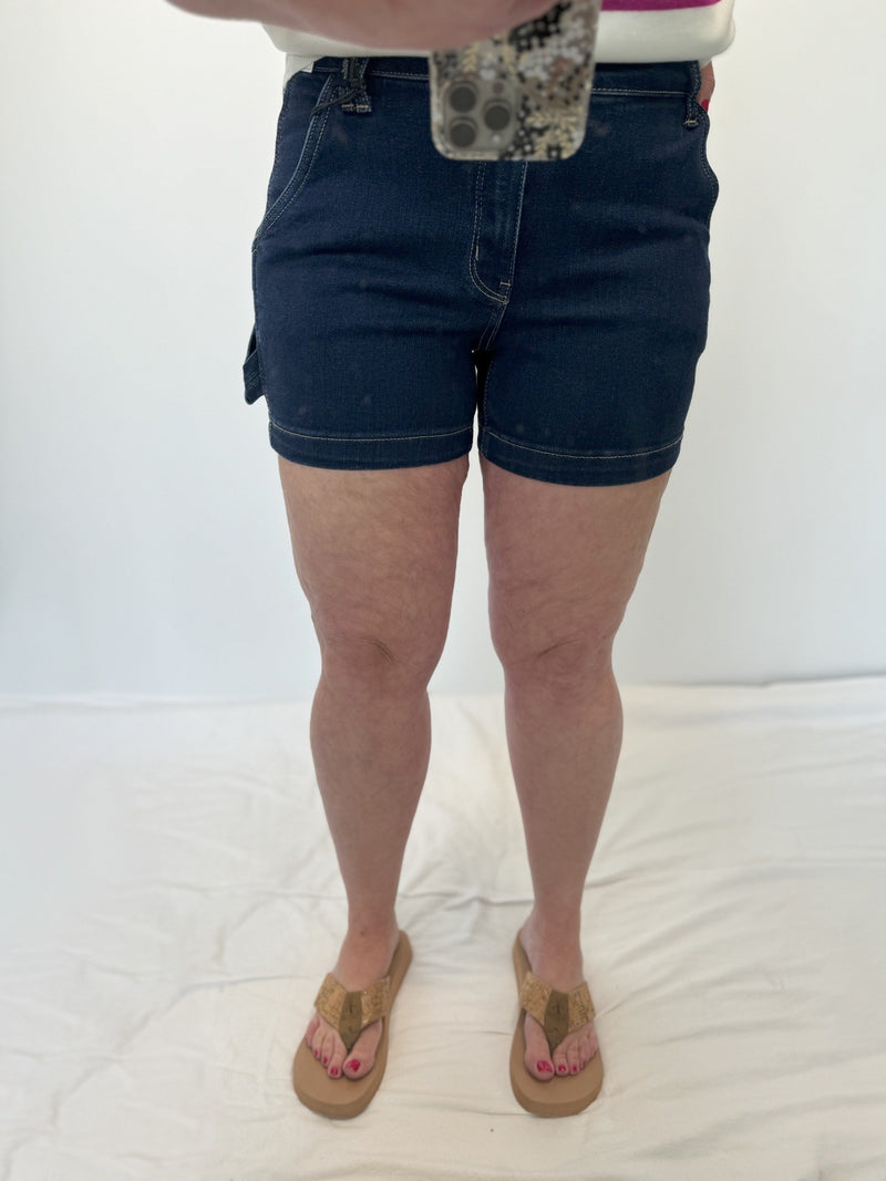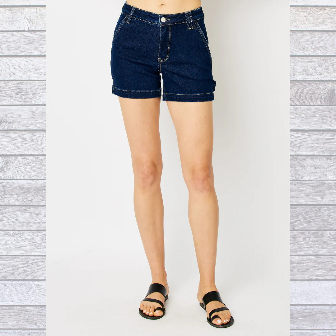 Get ready to rock some serious style with Judy Blue's Dark wash shorts. These non distressed beauties feature a unique carpenter loop and bold contrast stitching that is sure to turn heads. Be the talk of the town with these fashion-forward jeans.