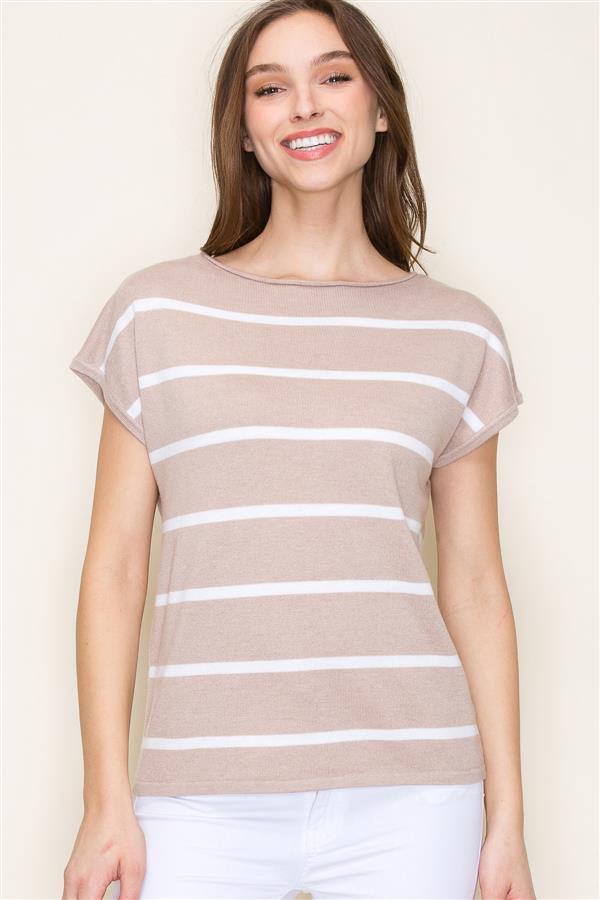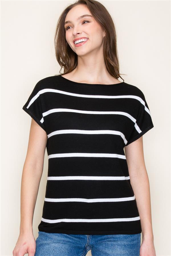 Hope Ribbed V-Neck Sweater Tank in Navy Stripe