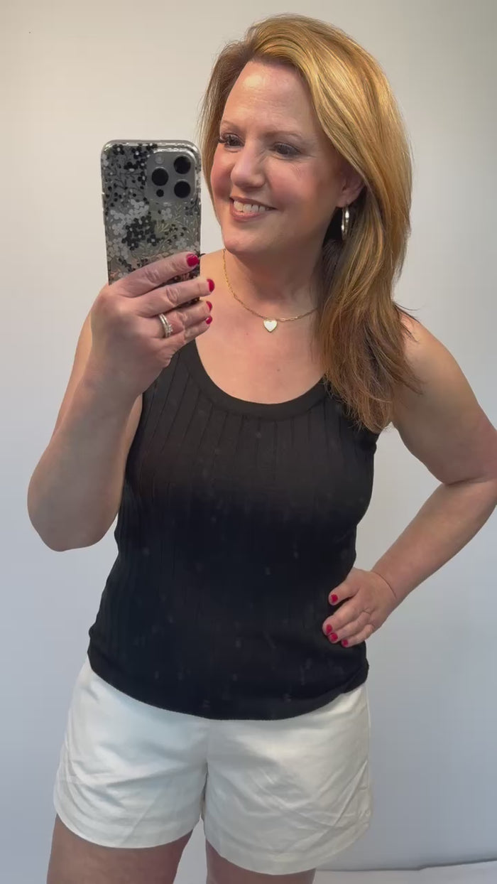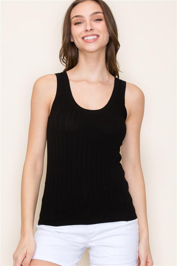 Sabina Scoop Neck Ribbed Sweater Tank in Black