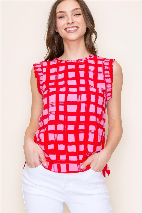 Jayde Smocked Arm Sleeveless Rayon Top in Red
