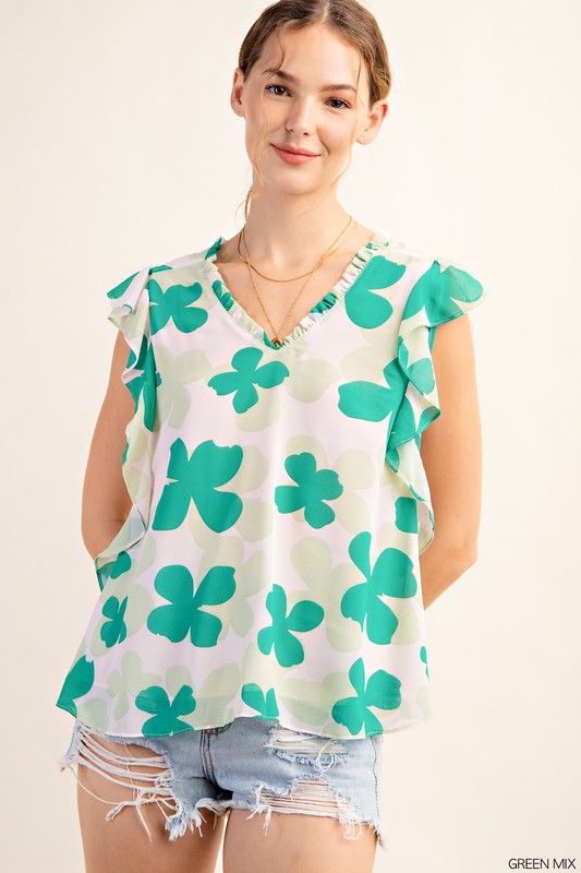 Flora Ruffle Cap Sleeve Top in Kelly Green