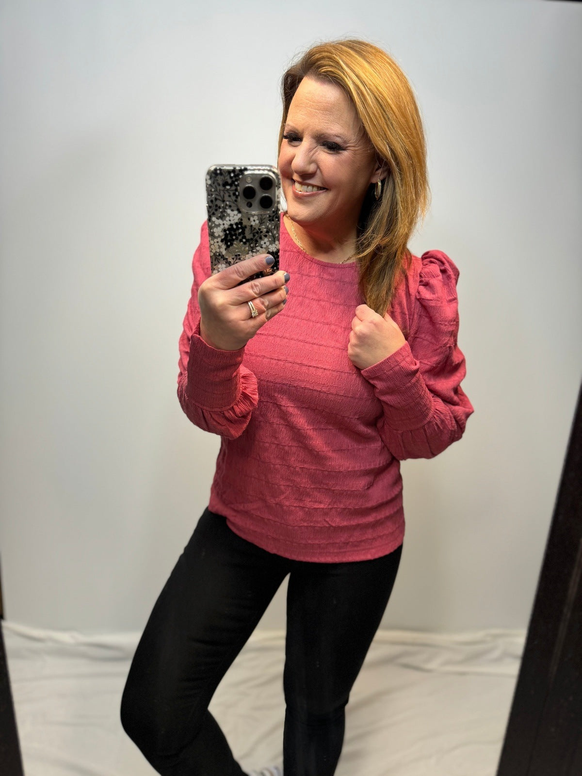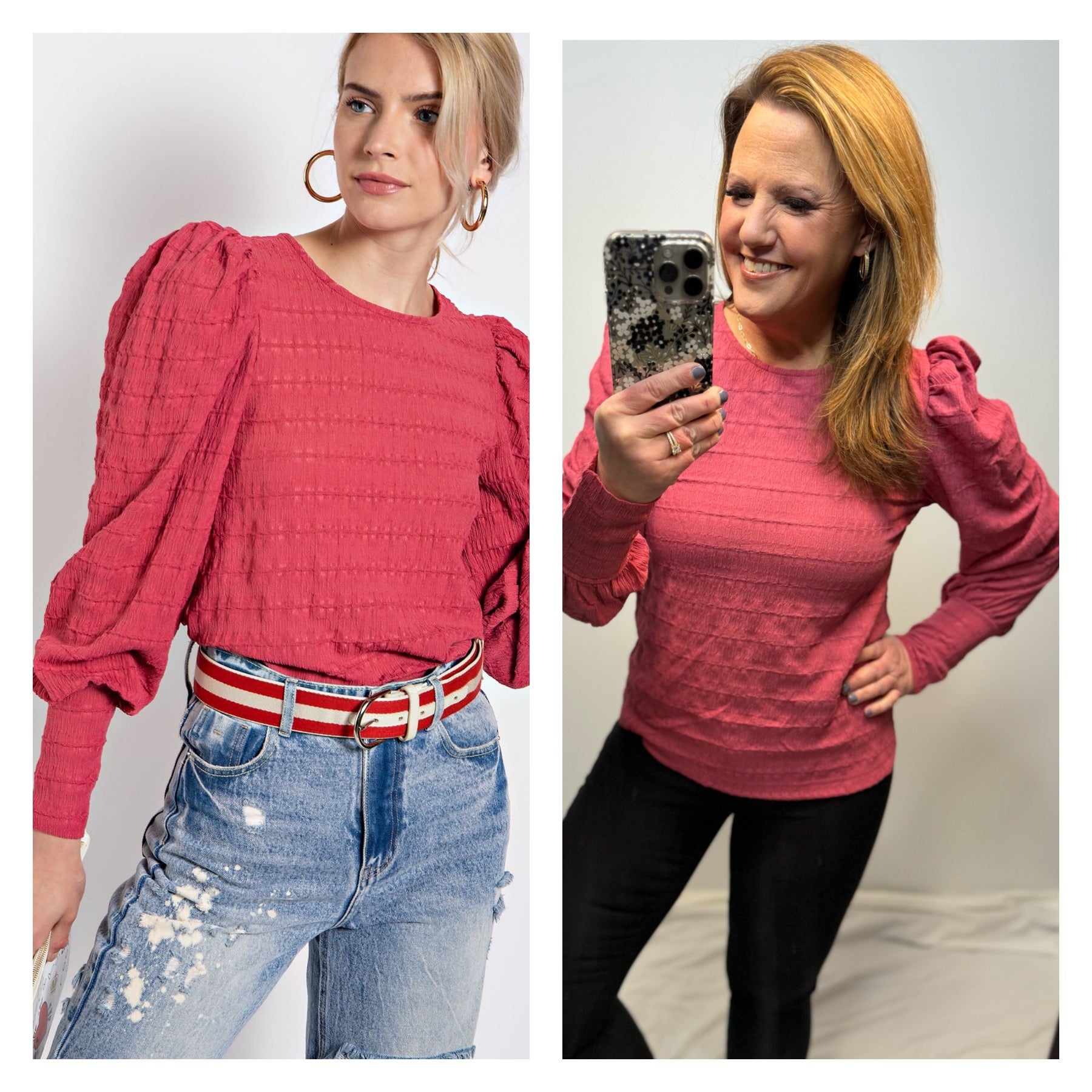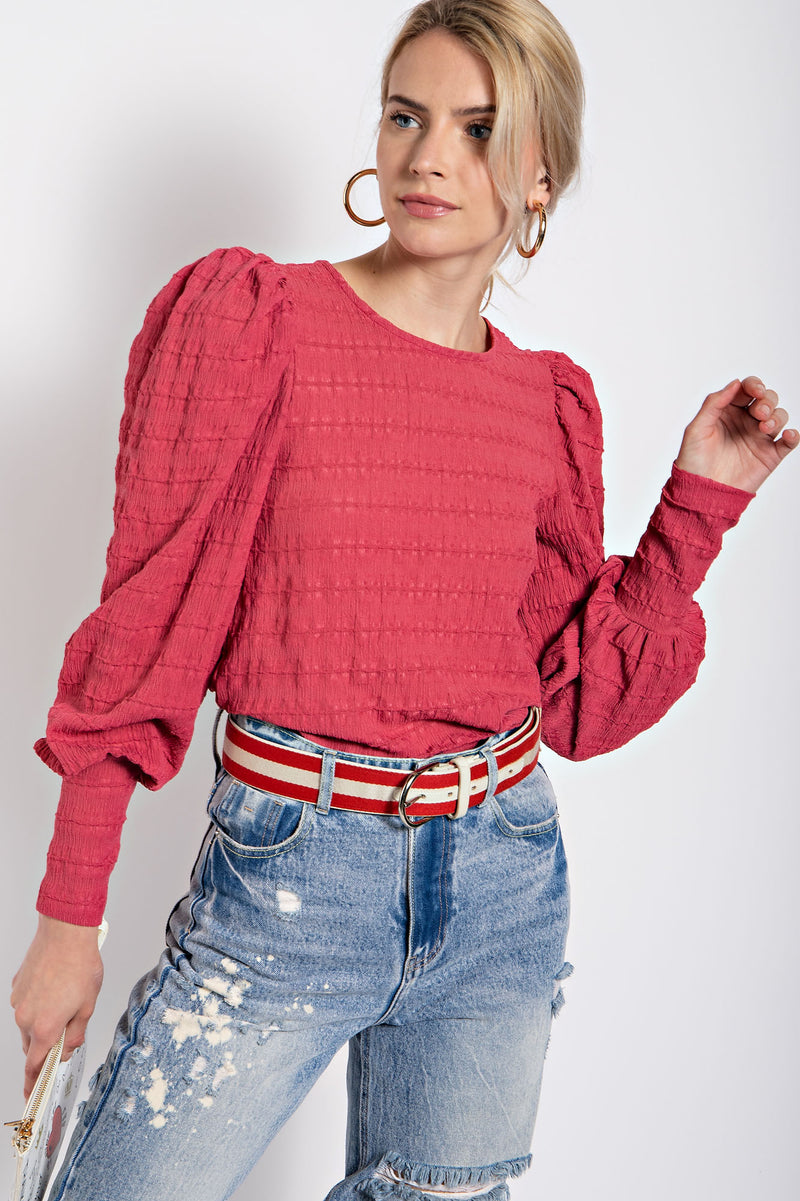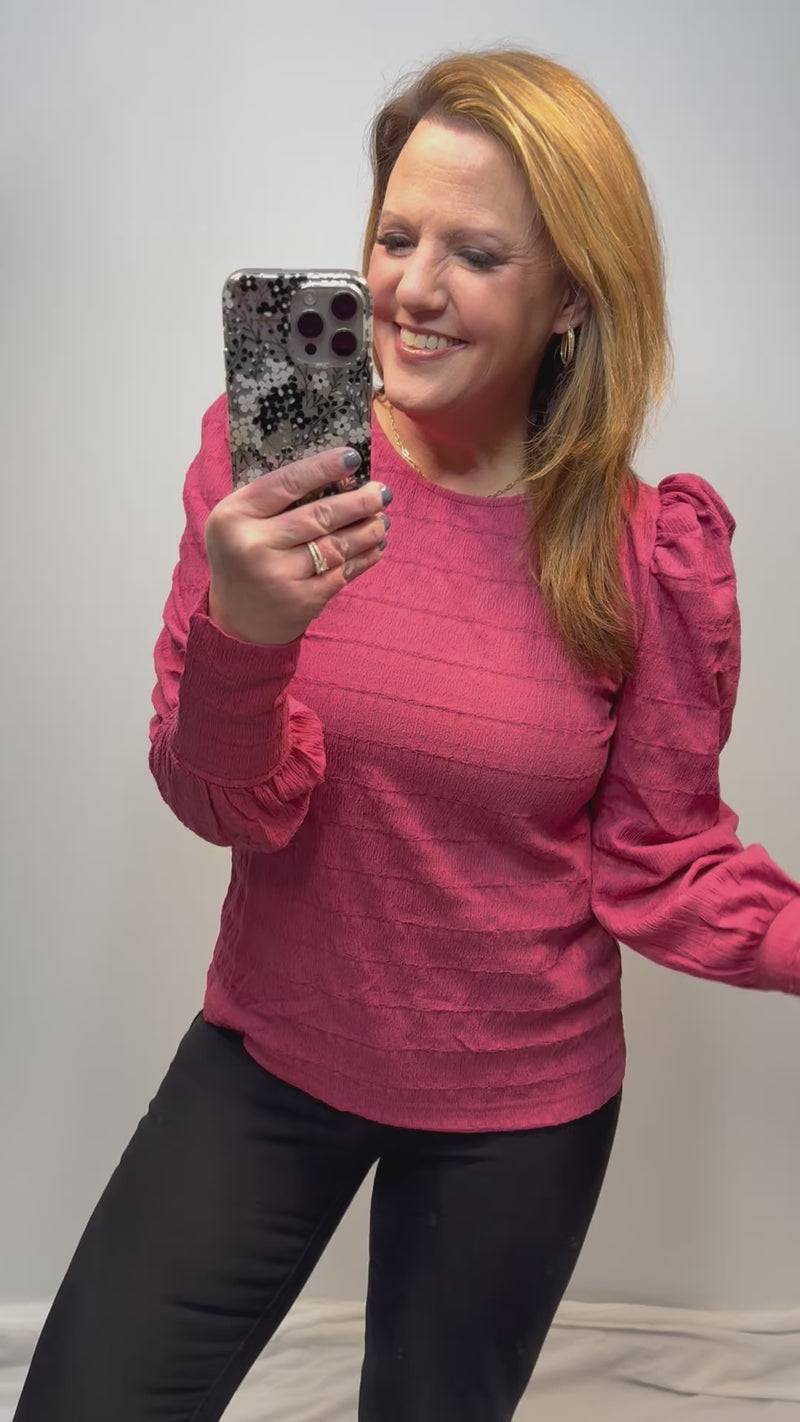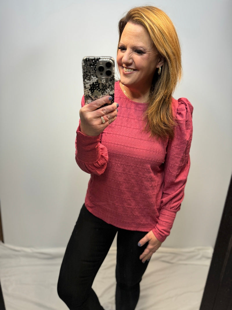 Get ready to turn heads with our Gina Textured Top! Feminine and flirty, this ruffle shoulder top is designed to give you the perfect fit. In a luscious berry color, it's sure to make a statement while keeping you comfortable. It has a texture that elevates this piece to be a 10 out of 10! Show off your playful side with this must-have addition to your wardrobe.