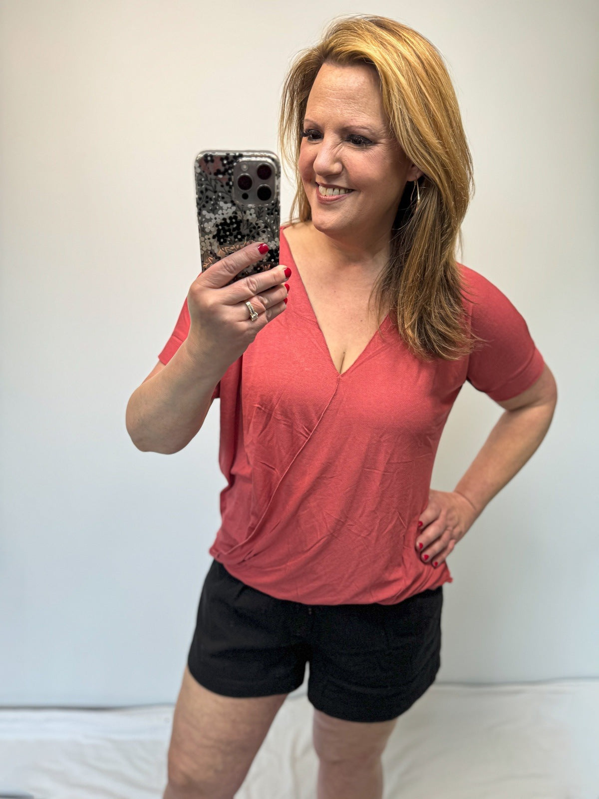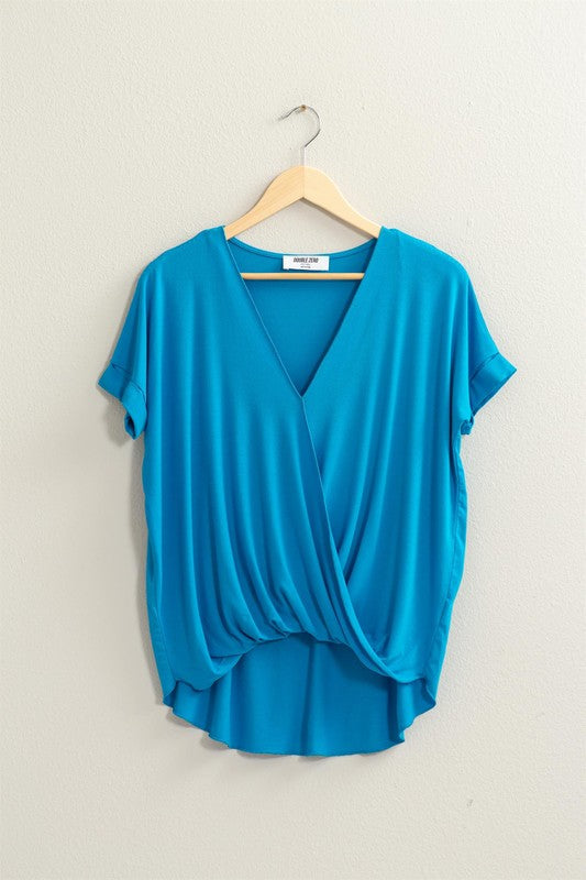 Upgrade your wardrobe with the must-have top. Blair is a playful top boasting a V-neckline, short sleeves, and a flowy, wide-cut bodice. It's relaxed silhouette ends in a rounded hem that dips stylishly longer in the back. Team with your favorite denim bottoms for the perfect effortless look.