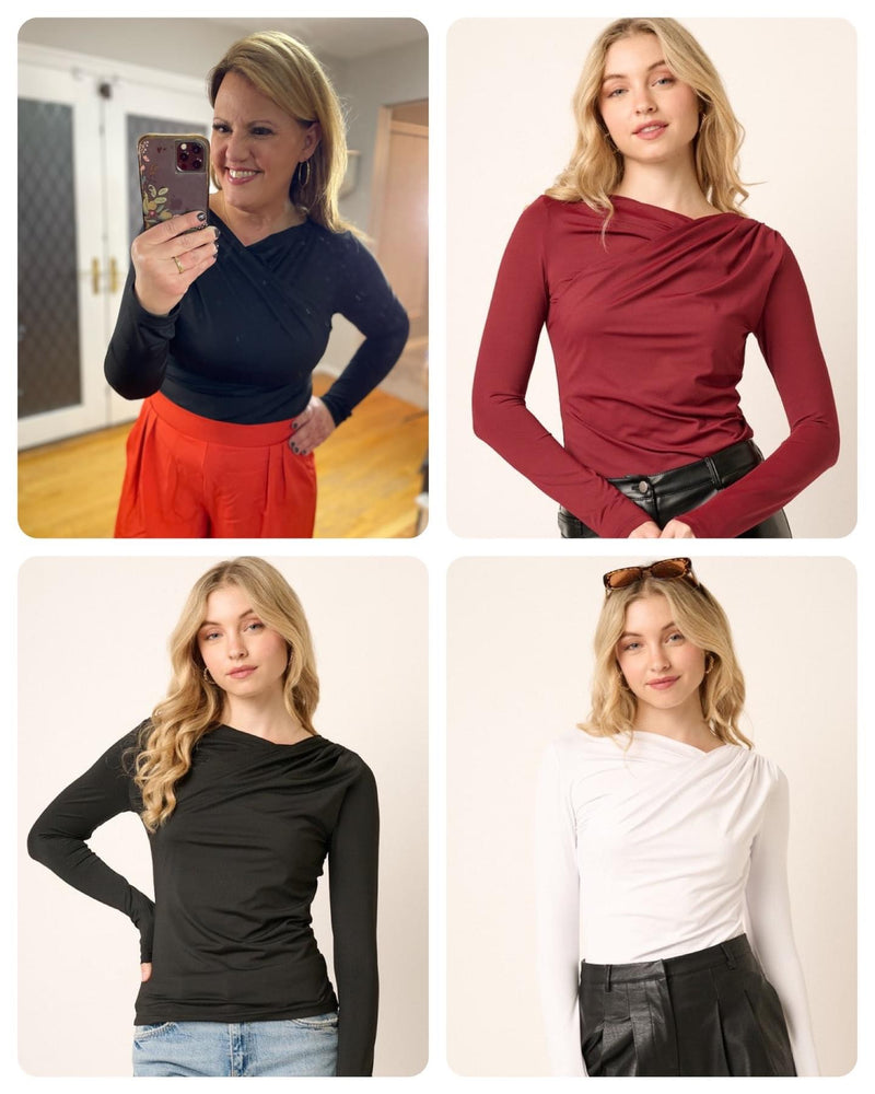 Calla is ideal for everyday style. Crafted from jersey knit fabric with a V neck wrap and long sleeves, this slim fit top is a perfect mix of comfort and fashion! There's no way you'll go unnoticed in this modern classic.