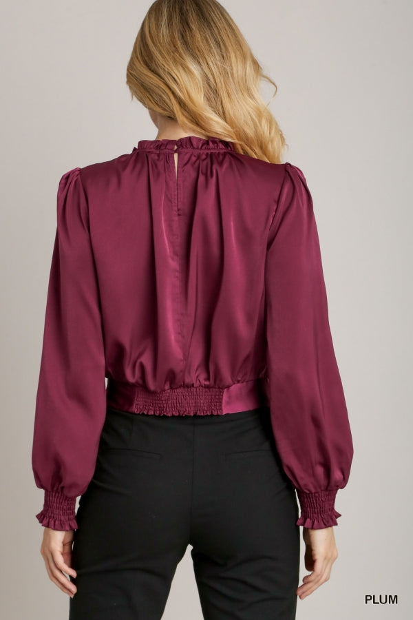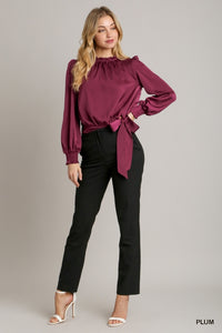 Effortless elegance (and comfort) in one! Erin features a luxurious satin material, a flattering side tie, and a playful ruffle neck design. Perfect for a night out or a day at the office, this top will have you feeling chic and confident (without sacrificing any style).